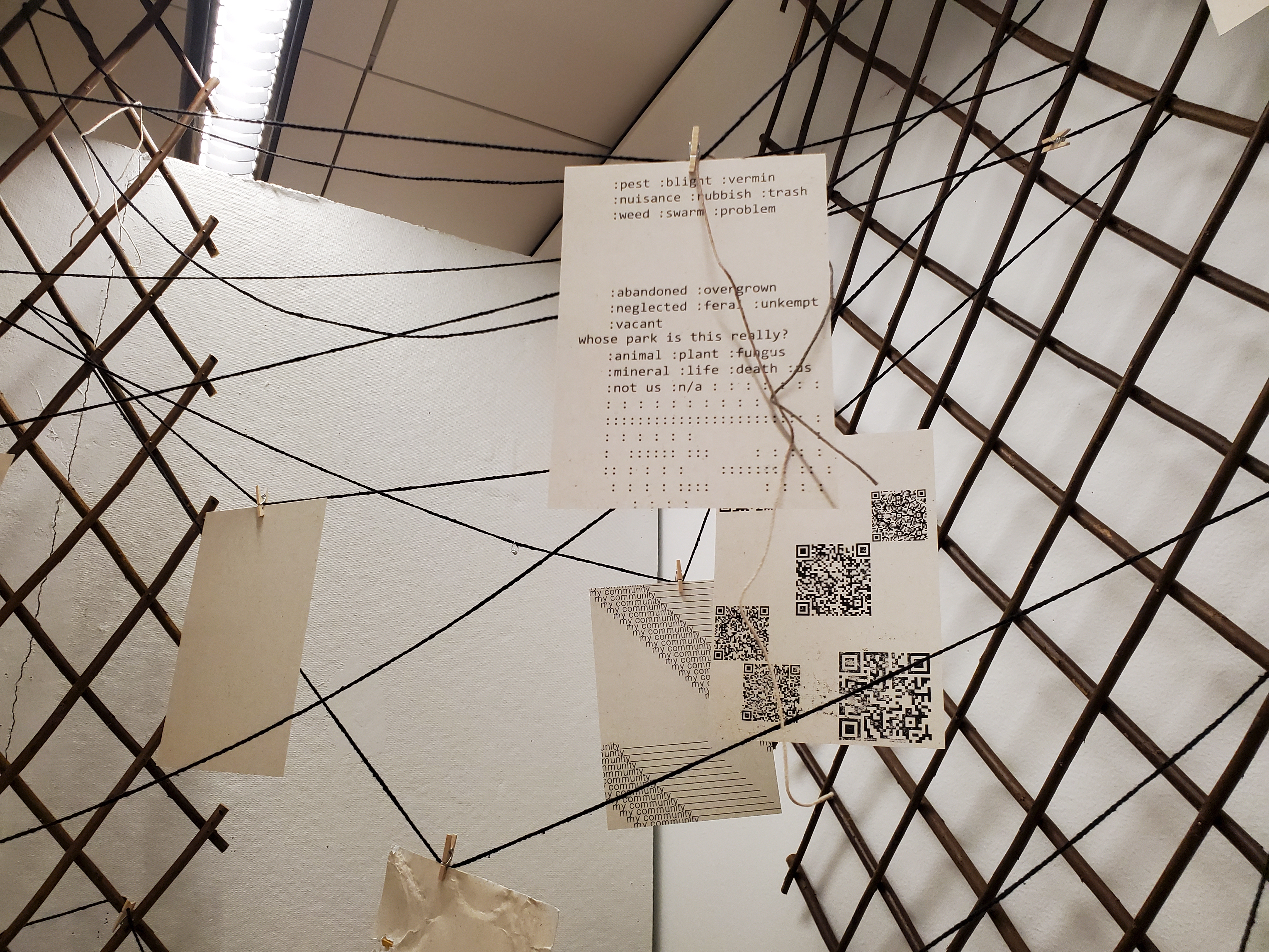 Resisting the colonial logics that force human and nonhuman world-making into necessary opposition with one another, this project attempts to imagine creative forms of commons maintenance that subvert habitual structures of domestication-qua-reclamation and participate in infra- and inter-species community-building (i.e. forms of maintenance that hold centrally the question, “Maintenance for Whom?”). If human and non-human claims to space in the built environment are so often construed as zero-sum (in the sense that human development often entails the displacement or eradication of plant or animal life, and nonhuman preservation often entails “protection” initiatives, or the partitioning of space over and away from human activity), how might we begin to think otherwise about the nature of proximity and access in the face of the contested socioeconomic stratification of the contemporary American city?